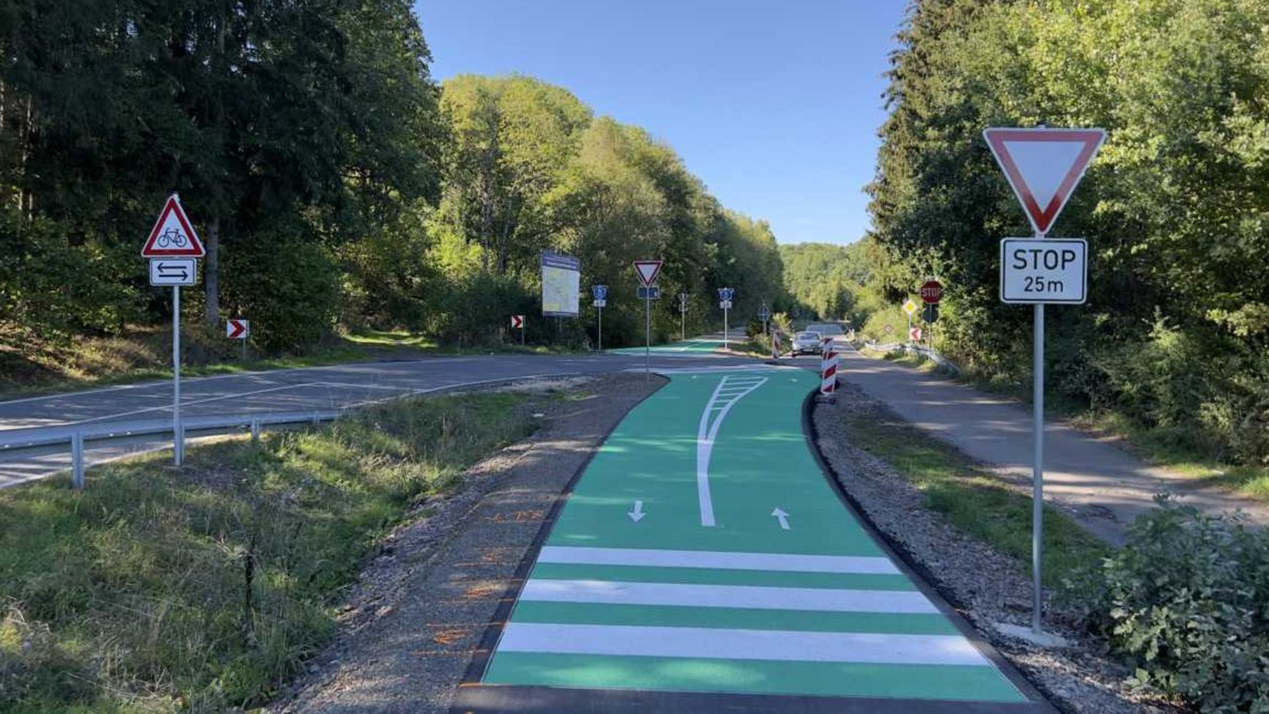- Im 2. BA wird derzeit an den Bahnübergängen und Querungen gearbeitet. Für die Osterferien ist der Bau der Querung in Türkismühle vorgesehen. Viele Markierungen sind bereits erfolgt, und die StVO-Beschilderung wurde angebracht.